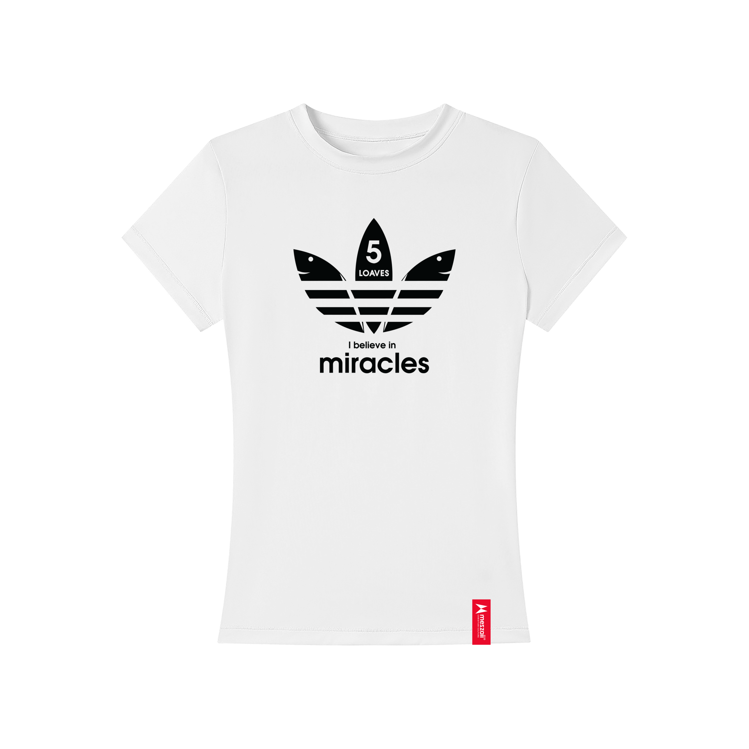 Step out in faith with our exclusive “I Believe in Miracles” tee from the Mezzaii Christian Culture collection. This powerful design transforms iconic sportswear brand into a testimony of God’s miraculous power, referencing Jesus feeding the 5,000 with just five loaves and two fish.